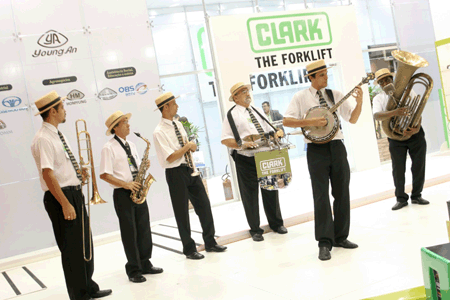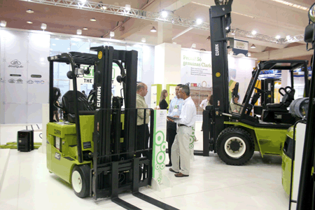CLARK,身著傳統(tǒng)環(huán)保CLARK綠色元素的標(biāo)準(zhǔn)圖案閃亮登場,12臺品字排開,氣勢奪人,另有配件展示在集裝箱區(qū)域內(nèi)做演示,展示強(qiáng)大售后服務(wù)力量,這是其品牌目前所不能披靡的。CLARK的亮點(diǎn)吸引了眾多的客戶和同行前來參觀。由于參展產(chǎn)品的創(chuàng)新性及強(qiáng)烈的美國優(yōu)良品質(zhì)特性,吸引了眾多感興趣的客戶簽約及洽談后期合作。