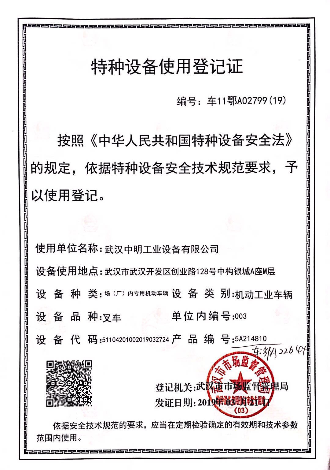 檢驗機(jī)構(gòu)會在收到報檢登記后15個工作日內(nèi),由檢驗員協(xié)調(diào)時間上門對叉車進(jìn)行檢驗,上門檢驗合格后,需要在湖北省政務(wù)服務(wù)網(wǎng)申請使用登記證。