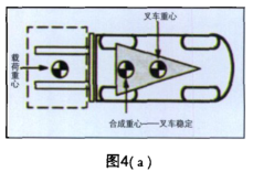 (c)動態(tài)穩(wěn)定性。以上的穩(wěn)定性討論沒有考慮車輛和貨物移動對叉車所產(chǎn)生的動態(tài)影響。重量轉(zhuǎn)移和合成重心變化取決于叉車運(yùn)行、制動、轉(zhuǎn)彎、起升、傾斜和下落貨物等情況時產(chǎn)生的動態(tài)力,這些是影響穩(wěn)定性的重要因素。