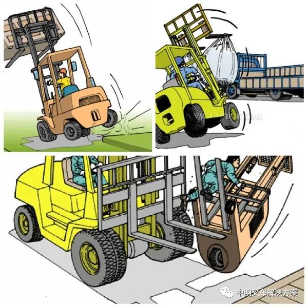 導(dǎo)致叉車可能側(cè)翻的原因,主要有: