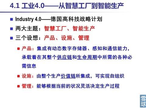 德國學(xué)術(shù)界和產(chǎn)業(yè)界認(rèn)為,“工業(yè)4.0”概念即是以智能制造為主導(dǎo)的第四次工業(yè)革命,或革命性的生產(chǎn)方法。該戰(zhàn)略旨在通過充分利用信息通訊技術(shù)和網(wǎng)絡(luò)空間虛擬系統(tǒng)—信息物理系統(tǒng)(Cyber-Physical System)相結(jié)合的手段,將制造業(yè)向智能化轉(zhuǎn)型。