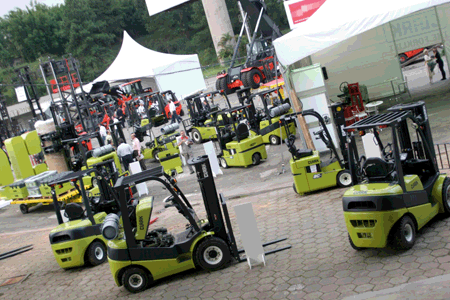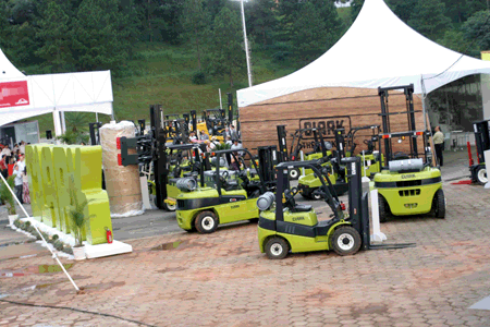 CLARK,身著傳統(tǒng)環(huán)保CLARK綠色元素的標(biāo)準(zhǔn)圖案閃亮登場,12臺品字排開,氣勢奪人,另有配件展示在集裝箱區(qū)域內(nèi)做演示,展示強(qiáng)大售后服務(wù)力量,這是其品牌目前所不能披靡的。CLARK的亮點(diǎn)吸引了眾多的客戶和同行前來參觀。由于參展產(chǎn)品的創(chuàng)新性及強(qiáng)烈的美國優(yōu)良品質(zhì)特性,吸引了眾多感興趣的客戶簽約及洽談后期合作。